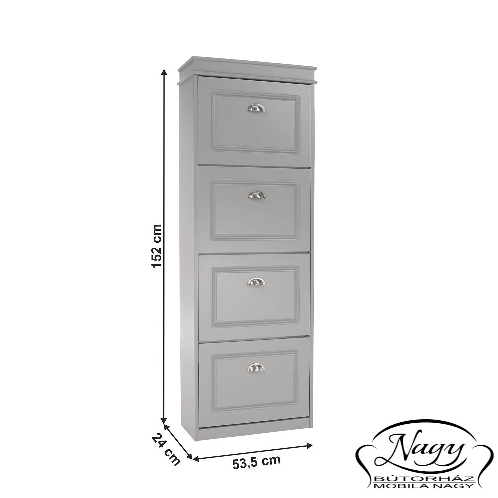 Pantofarul Seber Typ-3 este prevazut cu patru sertare si două rafturi în fiecare dintre acestea. Piesa de mobilier este excelenta pentru organizare si se incadreaza foarte bine in hol, datorita dimensiunilor compacte.