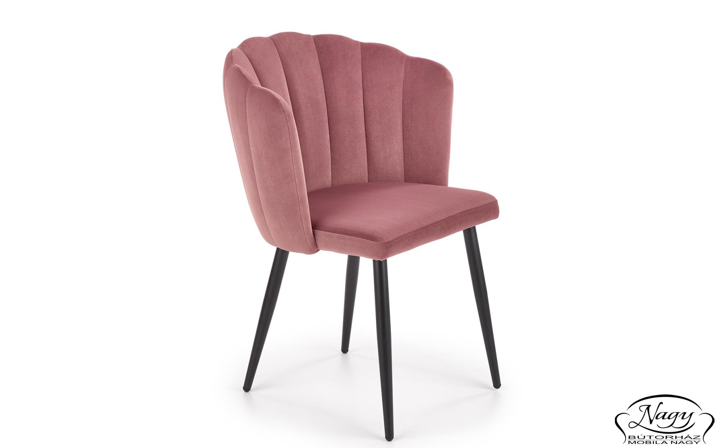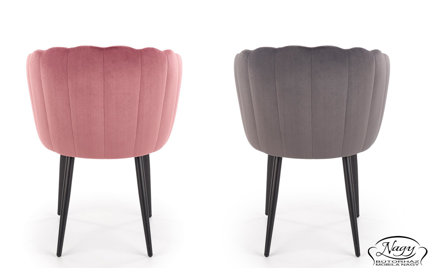 Scaunul K386 are un design modern cu un spatar nonconformist dar care atrage datorita formei lui. Aspectul scaunului si realizarea lui confera acestuia o nota distinctiva, eleganta, potrivit cu stilul glamour. Catifeaua folosita este de inalta calitate care asigura o utilizare indelungata si rezistenta sporita. Picioarele solide sunt realizate din otel finisat care garanteaza durabilitatea, rezistenta si stabilitatea scaunului. Scaunul K386 este potrivit pentru interioarele moderne atat ca utilitate cat si ca un element decorativ deosebit.