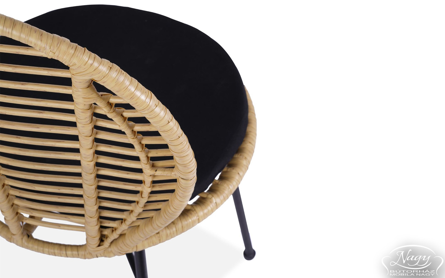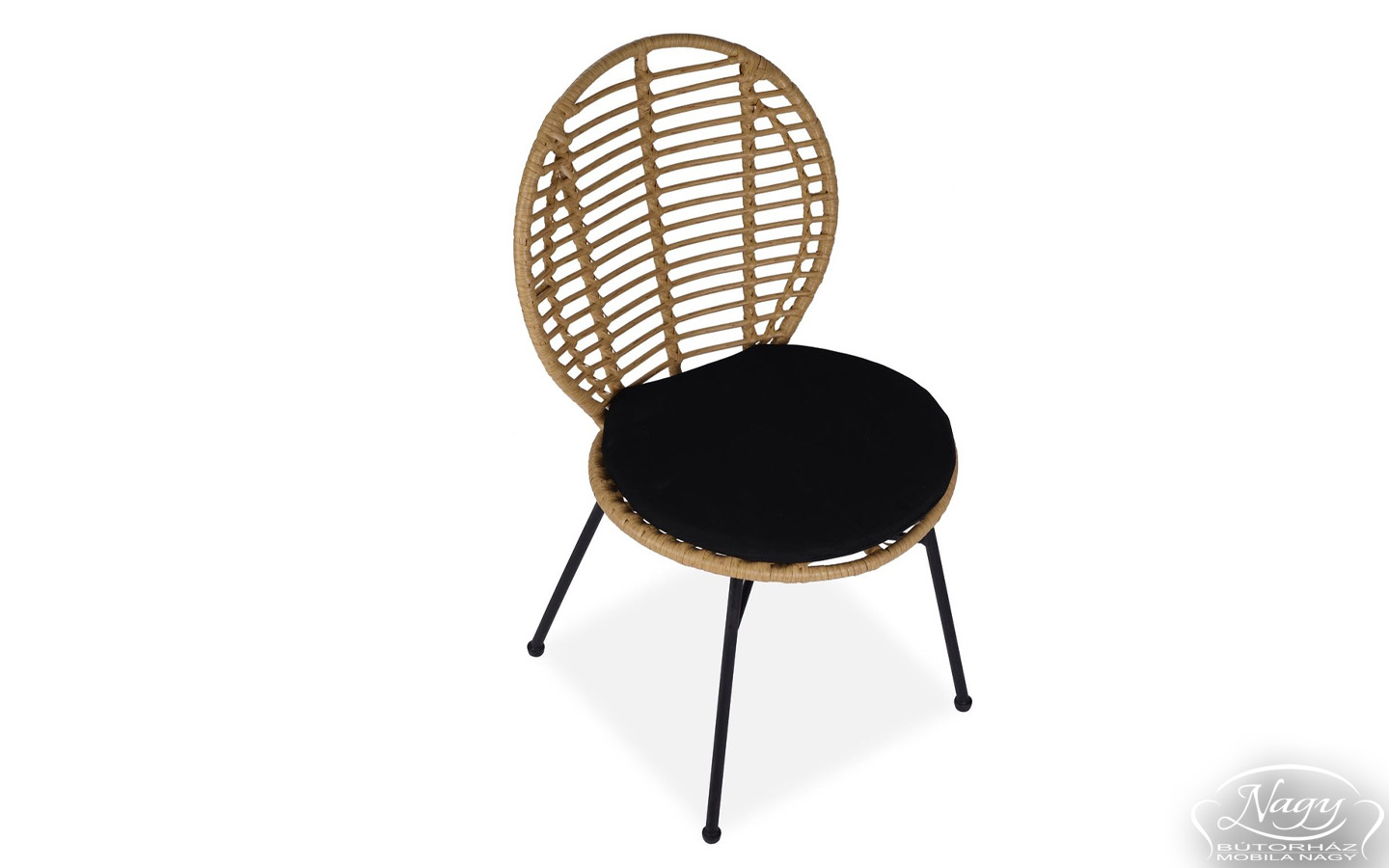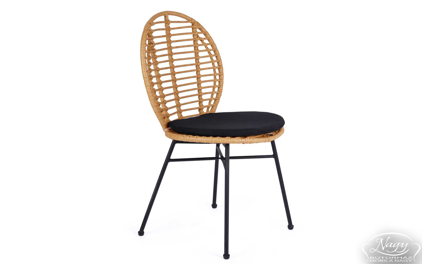 DENUMIRE: SCAUN TERASA K472, NATURAL/NEGRU, TAPITERIE DIN RATAN, STOFA SI PICIOARE DIN METAL, STIL MODERN